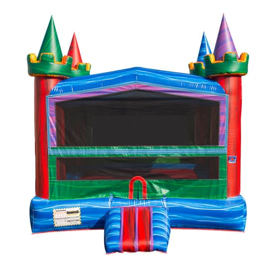 The Marble Rush Bounce House is a must-have for that big party or event when you want to bounce for hours with your friends. The red, blue, yellow, purple and green are mixed and swirled together and are sure to be visually pleasing for all party goers.. This bounce house has been great in a variety of settings from outdoor and indoor events, church events, school events, backyard parties, and so much more. We only have one of these bounce houses with the marbled color theme, so be sure to book now if you would like to have it for your upcoming event.