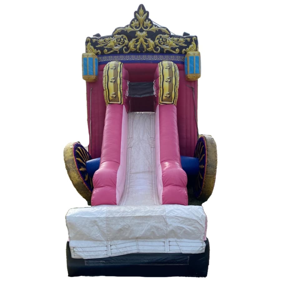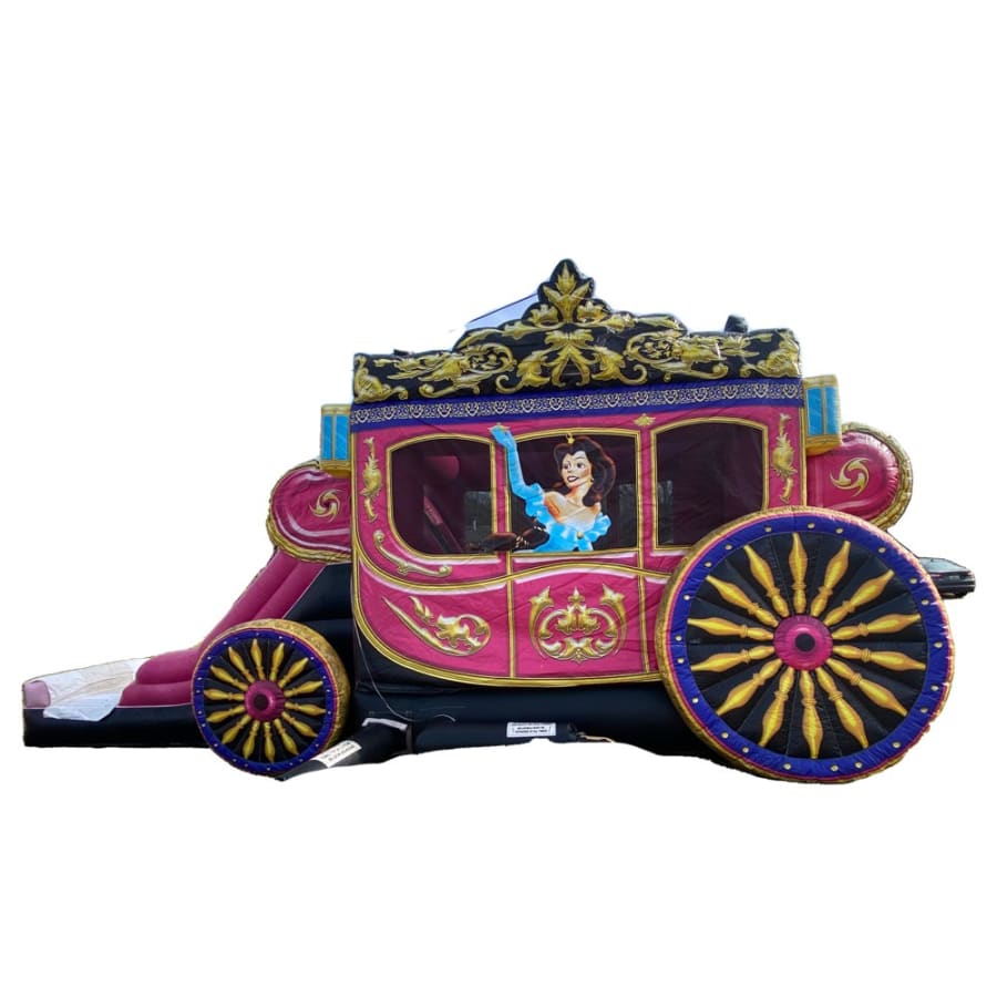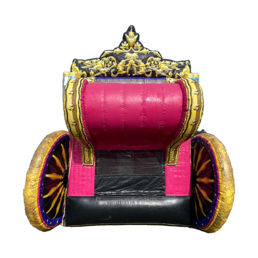 The Princess Carriage Combo Bounce House is a one-of-a-kind combo. it is equipped with a section for bouncing with a slide connecting to the bounce house. Modeled after a real carriage, with a princess, the Princess Carriage Combo is sure to be a hit at your little princess's party. It has been used in a variety of settings from outdoor and indoor events, church events, school events, backyard parties, and so much more. We only have one of these combos houses, so be sure to book now if you would like to have it for your upcoming event.