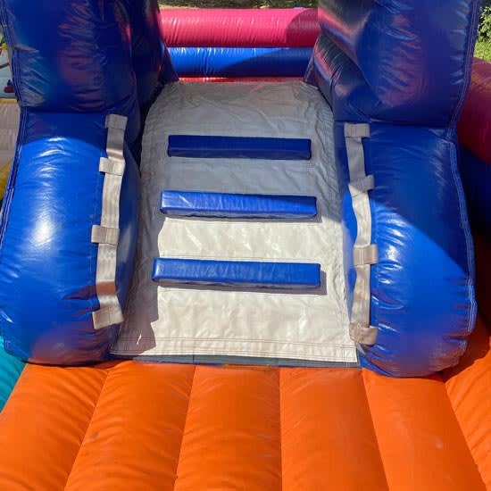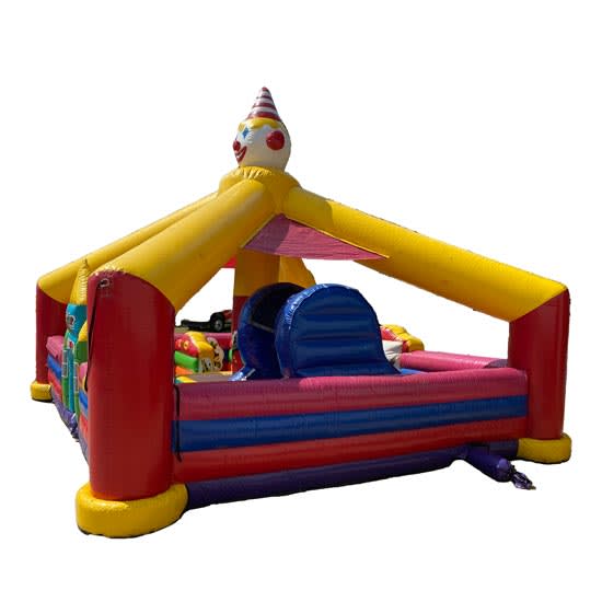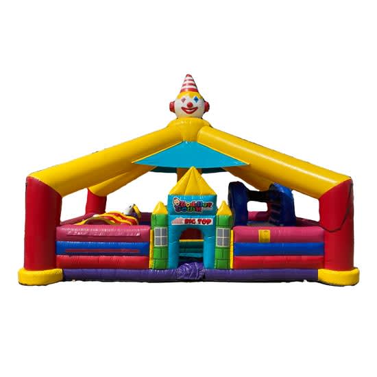 The Big Top Toddler Obstacle Course will be a perfect fit for your next party or back yard event. It is usable by toddlers and young children. The Big Top Toddler Obstacle Course takes a 1.5 HP blower to run it. The Bit Top Toddler Obstacle Course is available for rent for your backyard event, school event, and more. It is a dry unit only, so no water can be used on this inflatable. Young children will have a great time playing in the many obstacles that are available on this inflatable.